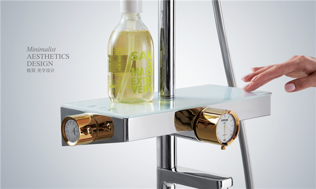 ??一般的花灑通常是通過左右轉動調溫手柄來調節水溫,稍微有一點偏差,就可能凍著或燙傷自己。箭牌恒溫花灑鎏金歲月的調溫手輪則運用齒輪傳動比,每一次調節都精準到位,通過可視溫度盤的觀察,調節溫度時也能對水溫的變化作出預判。箭牌恒溫花灑的記憶金屬推動陶瓷閥芯來調節冷熱水的出水量,使水溫恒定。恒溫是衛浴產品的流行趨勢,它帶來的良好體驗不必贅述,體驗過一次就會念念不忘。