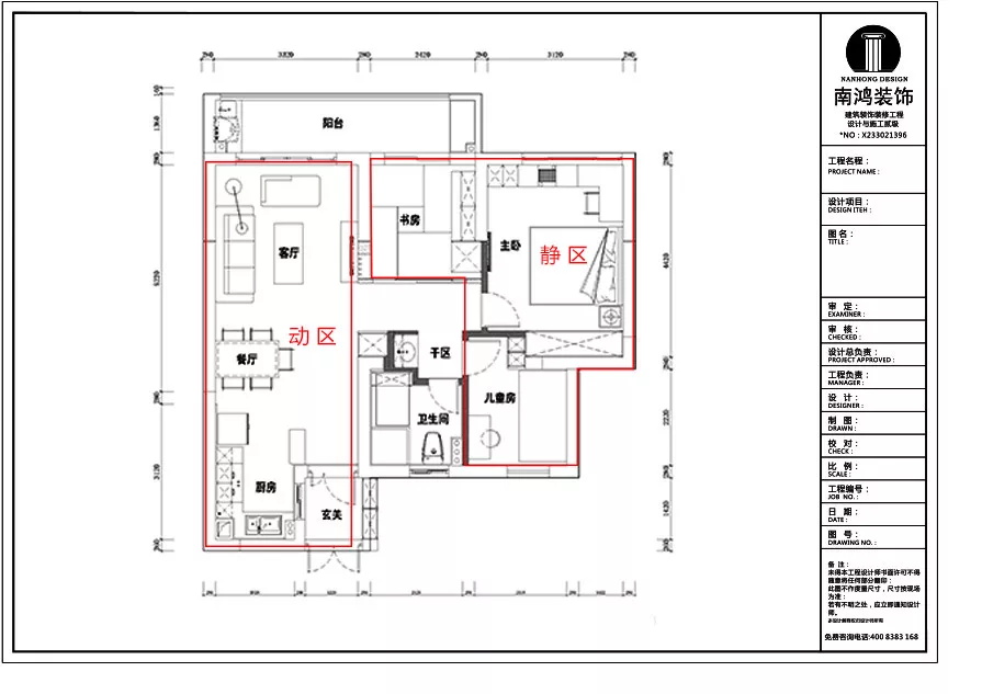 所謂“動靜分離”,就是把動區(客廳、廚房、餐廳等)跟靜區(臥室、書房等)通過合理的空間布局給分離開來,在動區的活動保持的基礎下,又能讓靜區能夠保持一定的私密性,減少彼此之間的干擾。