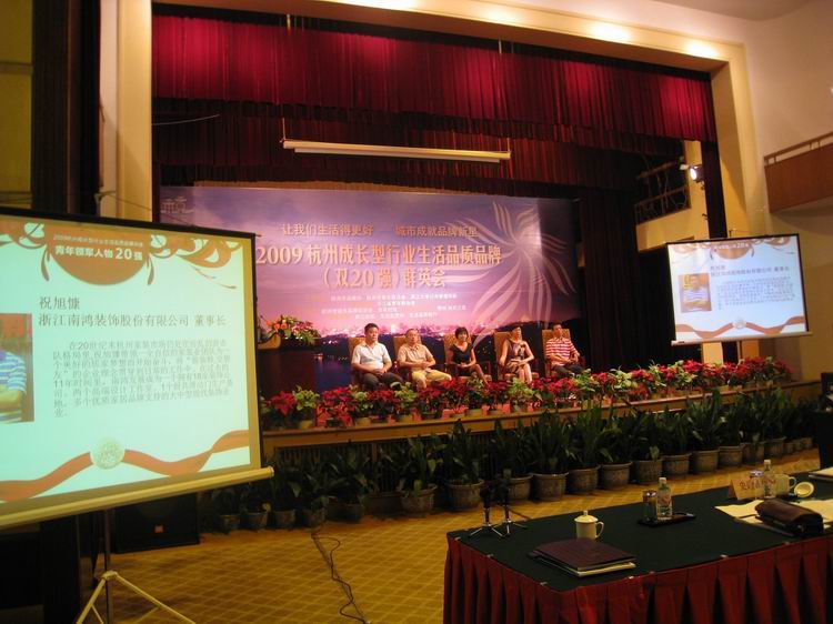 2009年9月20日,在美麗的浙江賓館,舉行了2009杭州成長型行業生活品質品牌群英會,本次群英會的參賽企業家均是入選2009成長型行業生活品質青年領軍人物和品牌企業的雙20強的企業和個人。