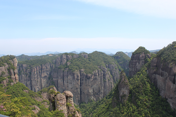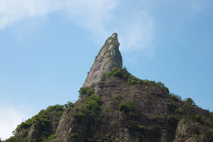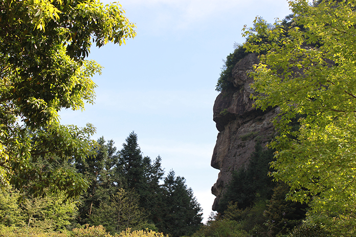 我們經過“問仙橋”,走著那清涼的石子小路,來到“神筆畫天”面前,看呀,那座山的山坳里露出了一個毛筆頭,筆尖對著天空,漸漸飄來的白云,好像是它那杰出的作品。真不知是哪位神仙把那么珍貴的寶物丟在了神仙居這廣闊的土地上。
