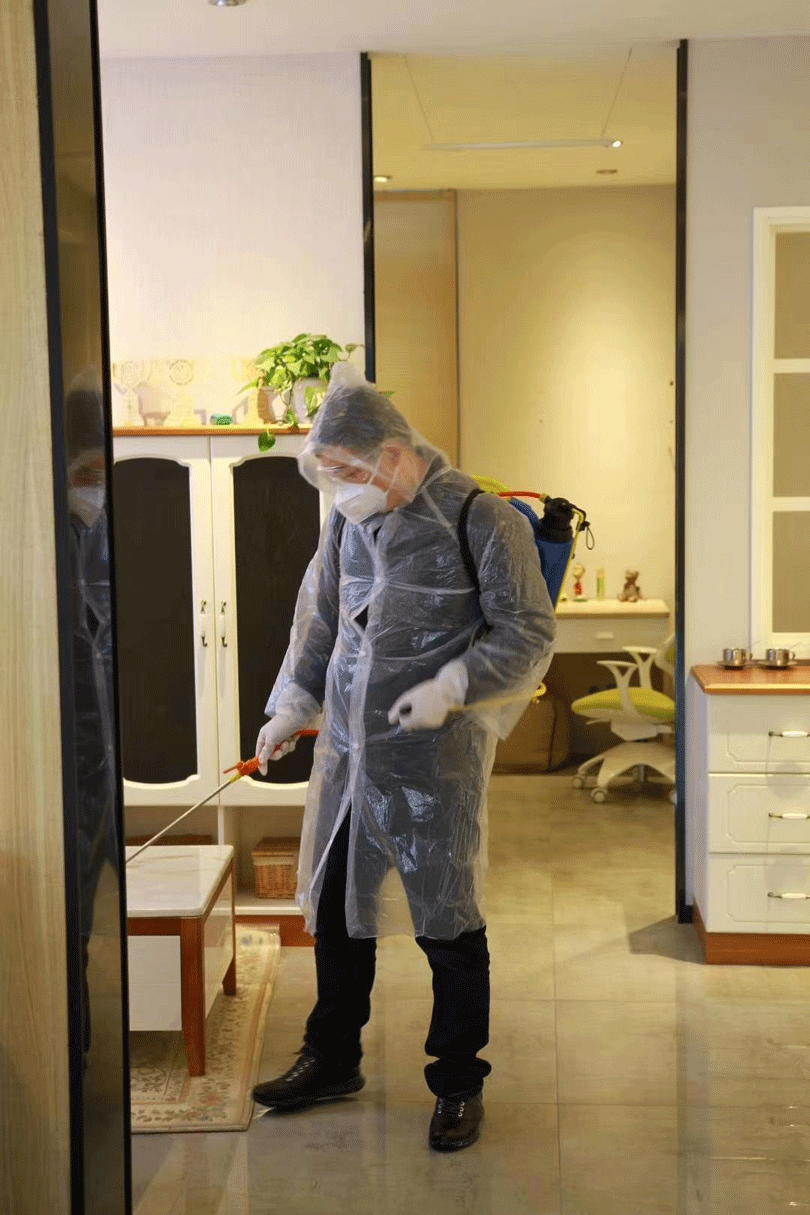 公司消殺防控由衛生消毒組產品經理鄭勇平負責,組織人員對辦公區域、電梯間、樓梯間、大樓外圍、地下車庫等重點區域開每兩小時消毒一次,并建立臺賬隨時檢查。
