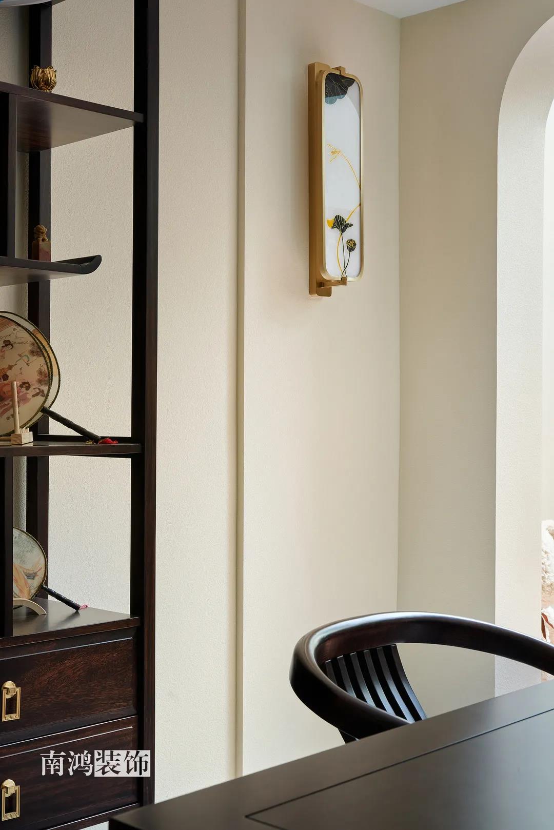 書房,乳白色的漆面結合成品中式家具,主人的所有閑情雅致,都能在這方天地里,怡然自得。