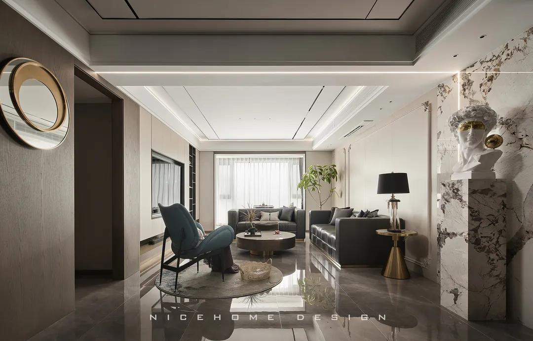 【項目·信息】 地址 | 盛世天城 城市 | 中國 寧波 戶型 | 四室兩廳 面積 | 185㎡ 風格 | 現代輕奢 設計施工 | 浙江南鴻裝飾 主要用材 | 格萊美瓷磚、邁菲樂地板、杜拉維特衛浴、洛華隆櫥柜、美萃家具、南鴻美家軟裝等 關于本案 About The Design 今天為大家帶來一套現代輕奢風格新作,男女主人均為小學老師,女兒十歲,常住人口為三名。他們希望家首先是要實用,有盡可能多的收納空間,其次有較高審美需求,在空間表現上希望溫馨舒適又不失藝術格調。 溫和與沉靜是這個家的主調,開闊的空間擁有著優越的采光與視野。穩重的大地色配合大理石、金屬、皮革、棉麻等多種材質,極富力量和層次。 空間布局張弛有度,木飾面溫潤的色澤將暖意帶入其中,以“靜”為名的藝術妙筆記錄下生活的美好,打造一個生活美學與藝術氛圍相互平衡的居住領域。 關于戶型 About The House Type ▲原始結構圖 ▲平面設計圖 01. 客廳 Living Room 客廳是一個采光良好的方正大空間,明朗、大氣,穩重的大地色烘托溫和而親切的人文氣質。 頂面黑色不銹鋼和磁吸軌道燈形成線條延伸感,增加了視覺層次。沙發背景植入小法式護墻混搭,與大衛雕塑組合,為空間注入靈動與格調。自過道口頂端特意拉出一道折線燈帶,勾勒個性的藝術氣場。 壁掛電視與收納背景合而為一,外觀利落整潔。儲物柜精準分配開閉比例,收放自如之間,穩妥了實用機能,協調了日常節奏,讓設計感恰到好處。 空間平鋪的溫厚色澤以穩重低調的問候與居者發生情感碰撞,含蓄內斂兼具東方美學韻味,一呼一吸之間將溫度與關懷深入人心。 陽臺處設計品茶區,清冽的茶香伴著溫煦日光,縈繞此間的只有言笑晏晏的自在感受... 02. 餐廳 Dining Room 餐廳與客廳以過道為界,餐桌椅均線條簡練卻不乏精致細節,一側大體量餐邊柜用于收納諸多雜物,空出的操作臺日后可擺放一些小家電,方便制作簡餐。 03. 廚房 Kitchen 廚房櫥柜選擇與公區域同種溫和色系,搭配灰色墻地磚,視覺得到統一,空間更顯明亮潔凈。 04. 過道 Corridor 過道懸一幅尺寸適中的掛畫,詩意的綠色剛好與背景墻大理石肆意灑脫的紋理相映成趣,賦予空間別樣的張力。 05. 臥室 Bedroom 主臥之內所流動的情感,溫暖而真誠。藝術感與生活感交融,營造出親切而閑適的氛圍,分分鐘便能撫平主人一天的疲憊。 床尾斗柜延伸出梳妝臺區域,綠植、畫作、小雕塑,共同圍構出一角小小的藝術天地。 客臥的氣質同樣雅致非凡,光線流連入內,盈盈散發著溫潤平靜的質感。右上角的個性掛飾就像是懸浮在半空中的月亮,讓夜晚充滿浪漫的情調。 06. 兒童房 Children's Room 以馬卡龍粉為主色調的女兒房,睡眠區、學習區、休閑區、收納區被有序安置,保障孩子能夠擁有一個完善的成長環境。房間內也有許多孩子喜愛的童趣元素,看,墻上這只頭戴小花的兔兔是不是就特別地可愛呢~ 自然親膚的面料給予孩子最大的舒適感受。 07. 書房 Study 書房,沒有任何多余的裝飾,書桌椅+大書柜的配置便已足夠日常的辦公、學習使用,轉角飄窗也被妥善利用起來,作為閑適一角。 08. 衛生間 Toilet 衛浴干濕分離,懸空式設計的原木儲物柜與臺盆柜足以滿足收納之需,視覺上也更加輕盈不添負擔,保留一份簡單純粹。